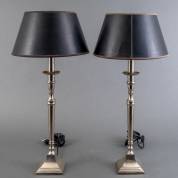 Paar tafellampen met zilverkleurige voet, hedendaags, 64 x Ø30 cm