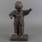 Bronzen beeld: kindje in tuinbroek, linksonder onduidelijk gesigneerd en gedateerd 2000, 49 x 28 x 20 cm