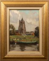 Willem Welter (1895-1939), gezicht op de Grote Kerk te Gorinchem, olieverf op doek, r.o. gesigneerd met pseudoniem W. Markestein, 34 x 24 cm