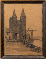 Joop Kropff (1892-1979), 'Oostpoort Delft', houtskool en pastelkrijt op papier, l.o. gesigneerd -enkele vlekjes in de lucht-, 49 x 36 cm