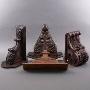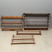Vier houten bordenrekken met gekerfde en gestoken decors, 80 x 22 x 15 cm