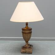 Tafellamp met bronskleurige vaasvormige houten voet en crèmewitte kap, 68 x Ø 45 cm