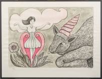 Henry Heerup (1907-1993), meisje bij eenhoorn, litho 9/20, in potlood r.o. gesigneerd, 49 x 63 cm