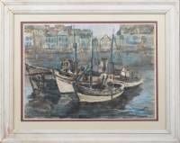 Hugo Rudolf August Liebe (1912-1996), 'Vissersboten in een Frans haventje', pastelkrijt op papier, verso gelabeld, 40 x 55 cm