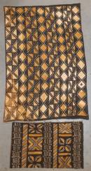Twee grof katoenen wandkleden met beschilderde geometrische motieven, Kuba, Democratische Republiek Congo, tweede helft 20e eeuw -gebruikssporen-, 280 x 180 cm