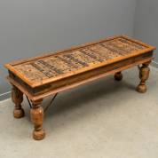 Houten salontafel, het blad gemaakt van een oude deur met ijzeren beslag, India, 20e eeuw, 55 x 148 x 54 cm