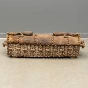Afrikaanse houten Boite Waro met gestoken decor van mensen en dieren, Dogon, Mali, 35 x 100 x 22 cm