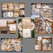 Grote verzameling aardewerk tegels, en scherven, diverse decors, diverse leeftijden -vele defecten en restauraties-