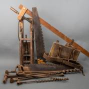 Diverse groot formaat houtbewerkingsgereedschappen: boren, zagen, etc.