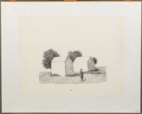 Mette Koornstra (1912-1978), figuur bij huisjes, litho e/a, in potlood gesigneerd en gedateerd 1972, 32 x 42 cm