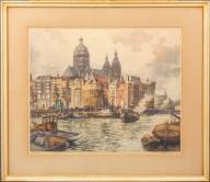 Hendrik Elias Roodenburg (1895-1987), stadsgezicht Amsterdam, kleurenets, r.o. gesigneerd -licht gebruind met enkele roestvlekjes-, 40 x 49 cm