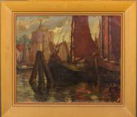Jos Lussenburg (1889-1975), havengezicht Enkhuizen, olieverf op doek, r.o. gesigneerd -verfverlies, in slechte conditie-, 49 x 59 cm