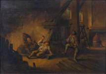 Hollandse School, drinkgelag, olieverf op paneel, niet gesigneerd, naar 17e-eeuws voorbeeld -craquelé, in het midden kleine beschadigingen-, 44 x 62 cm