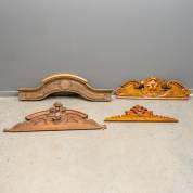 Vier houten sierkappen van kasten, diverse leeftijden en formaten -gebruikssporen-, 42 x 105 x 10 cm