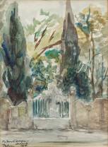 Hendrik Elias Roodenburg (1895-1987), 'Kapel te Asper', aquarel, r.o. gesigneerd en gedateerd '66, aangekocht bij Pulchri Stuido, Den Haag, 1984, kopie aankoopnota bijgevoegd, 32 x 50 cm