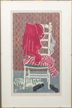 Jeanne Bieruma-Oosting (1898-1995), 'De Stoel', lino- of houtsnede 50/60, in potlood r.o. gesigneerd, 57 x 33 cm