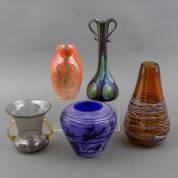 Vijf moderne glazen vazen, waaronder Tsjechisch glas, 20e/21e eeuw, 28 x Ø 12 cm