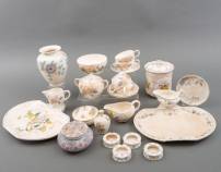 Divers lichtgekleurd plateel, waaronder aspergeborden met boterkannetjesuitvoering Koninklijke Plateelbakkerij Zuid-Holland, Gouda -kleine gebruikssporen en enkele defecten-