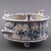 Blauw-wit geglazuurd aardewerk komfoortje met floraal decor, Holland, gedateerd 1786 -restauraties, randbeschadigingen-, 15 x Ø 26 cm