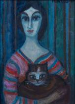 Kees Andrea (1914-2006), vrouw met kat, olieverf op canvasboard, r.b. gesigneerd, 38 x 28 cm