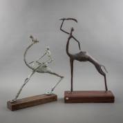 Twee metalen beelden: kamelenruiter, en centaur met kromzwaard, 68 x 46 x 15 cm