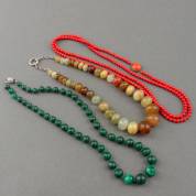 Drie diverse colliers, waaronder natuursteen, 104 cm
