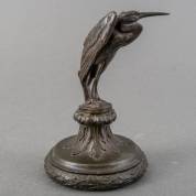 Bronzen beeldje: reiger, 14 x Ø 8 cm
