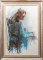 Freddy van Dyck (1942), meisje met pop, wasco en aquarel op papier, m.o. gesigneerd, 88 x 57 cm