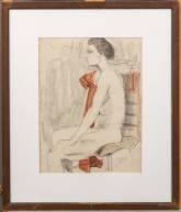Hollandse School: zittend vrouwelijk naakt, potlood op papier, r.o. gesigneerd Martens, 36 x 27 cm