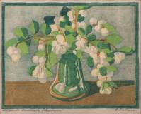 Erna Halleur (1860/85-1940), sneeuwbes in vaas, houtsnede, r.o. gesigneerd, 23 x 28 cm