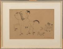 Ger Langeweg (1891-1970), ruiter, pentekening, r.o. gesigneerd -vlekjes-, 19-30 cm