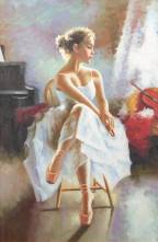 Schilderij: rustende ballerina, acrylverf op doek, niet gesigneerd, modern, 89 x 58 cm