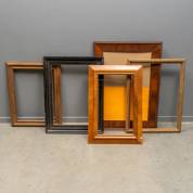 Vijf middelgrote lijsten, waaronder een zwarte met robbellijstjes -gebruikssporen-, sponningmaat grootste lijst 51 x 70 cm, 71 x 96 x 6 cm