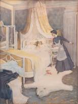 Litho in lijst: vrouw in bed, naar Ferdinand von Reznicek, 54 x 40 cm