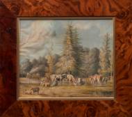 Europese School: de koeien worden gemolken, aquarel op papier, niet gesigneerd, 20e eeuw -waterschade-, 33 x 27,5 cm