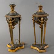 Paar lampvoeten op driepoot, empire-stijl -geen kappen en fittingen-, 47 x Ø18 cm