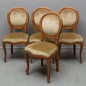 Vier notenhouten stoelen met groene velours bekleding, tweede helft 19e eeuw, 99 x 45 x 40 cm