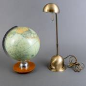 Globe op houten voet, uitvoering JRO verlag, München, daarbij: bronskleurige bureaulamp, uitvoering Massive, jaren '00, 37 x Ø23 cm