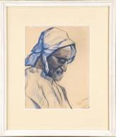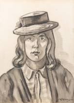 Matthieu Wiegman (1886-1971), portret van een jonge vrouw met hoed, inkt op papier, r.o. gesigneerd en gedateerd 1961 -roestvlekjes-, 75 x 55 cm