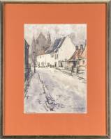 Herman Moerkerk (1879-1949), zicht op het Maarten van Rossumhuis te Zaltbommel, potlood en gouache op papier, r.o. gesigneerd, 33 x 23 cm