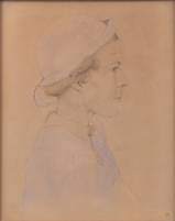 Hollandse School: vrouwenportret en profil, potlood en aquarel, r.o. gemonogrammeerd Avé en gedateerd 1937, 27 x 22 cm