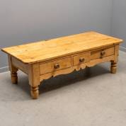Grenenhouten salontafel met drie laden, 48 x 156 x 68 cm