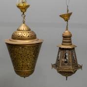 Twee messing lantaarns, 65 x Ø30 cm