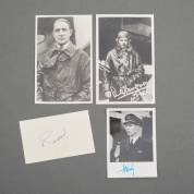 Autografen: Luchtvaart - Foto's en/of handtekeningen van 6 Nederlandse piloten: D.L. Asjes (gesigneerde foto en eigenhandig briefje, 1963), P.A. van der Broeke (handtekening), E.M.C.B. Franquinet, luchtvaartjournalist (handtekening), H. Hegener, luchtvaartjournalist (handtekening), H.A.A. Kooper (gesigneerde foto), H. Martin (gesigneerde foto), W. Versteegh (3 eigenh. briefjes, 1964). Daarbij: Nina en Jan Boesman, ballonvaarders (2 gesigneerde eerstedagenveloppen en gesigneerd kaartje), 1965-1970