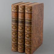 Drie boeken: Suikers, G. en I. Verburg. Algemene kerkelyke en wereldlyke geschiedenissen des aardkloots. Deel II, 5de tot 10de stuk (AD 1095-1702). Amsterdam, 1724-1728. 3 delen. Groot folio. Gemarmerd kalfsleer uit de tijd, rug verguld. Met gravures -enkele defecten aan rugeinden-, 41 x 26 cm