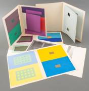 Josef Albers (1888-1976). Interaction of color. New Haven and London, Yale University Press, 1963. Groot 4to. Oorspr. linnen cassette. Twee tekstdelen en 79 platen (van 80) met kleurenstudies door studenten van Albers ('studies composed of color-printed and mounted colored paper, some with cut-outs'). Eerste druk, gedrukt in 2000 exemplaren -cassette licht versleten, platen op achterzijde gestempeld met stempel 'Koninklijke Academie voor Schone Kunsten - Antwerpen', enkele zeefdrukken met geschreven notities op achterzijde; -plaat VIII-1 ontbreekt-, 37 x 14 x 28 cm