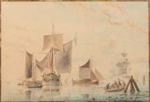 Johannes Cornelis Haccou (1798-1839), schepen op kalm water, aquarel op papier, r.o. gesigneerd, 43,5 x 29,5 cm
