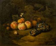 Schilderij: stilleven met vruchten en noten, olieverf op doek, r.o. gesigneerd v. Veerendael, 18e eeuw -inschilderingen-, 35 x 42 cm