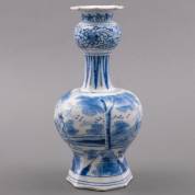 Delfts aardewerk knobbelvaas met blauw-wit doorlopend decor van een jachtscène, 18e eeuw -klein randchipje, glazuurschilfer-, 28 x Ø 13 cm