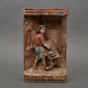 Gepolychromeerd naaldhouten reliëf: bakker aan het werk, vermoedelijk Duitse volkskunst, 19e eeuw -polychromie sleets-, 7 x 38 x 23 cm
